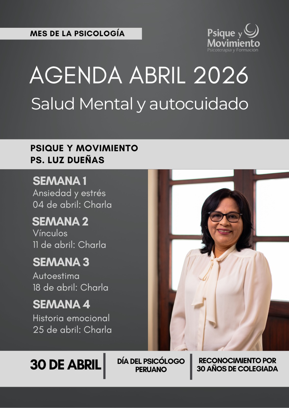 El 30 de abril, en el marco del Día del Psicólogo Peruano, este mes también representa un momento importante en la trayectoria profesional de la psicóloga Luz Dueñas.